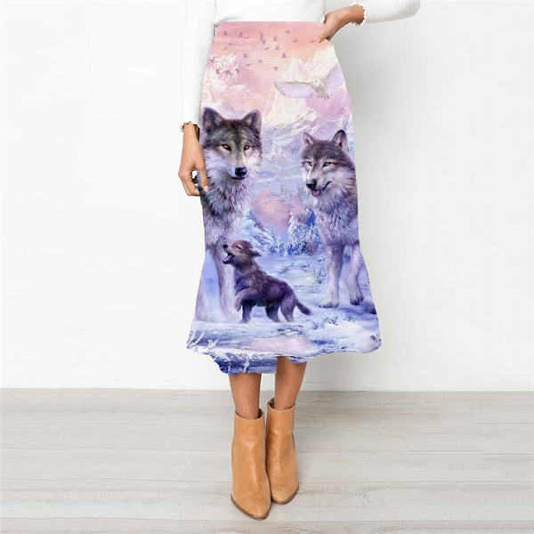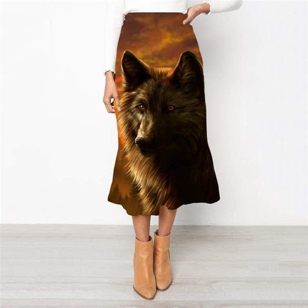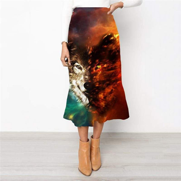 Wolf Skirts Women Animal Skirt Ladies Anime High waist skirts Psychedelic Rock ...