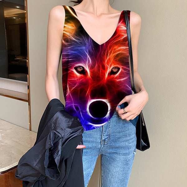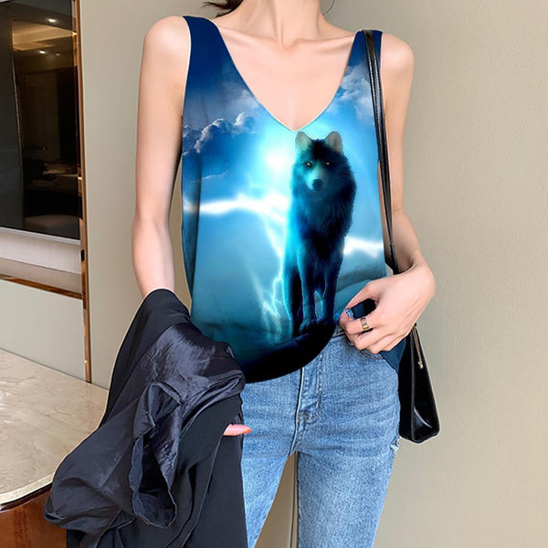 Wolf Tank-Top women Animal Funny Top Anime Tank Tops Casual Cloud Vest Printed