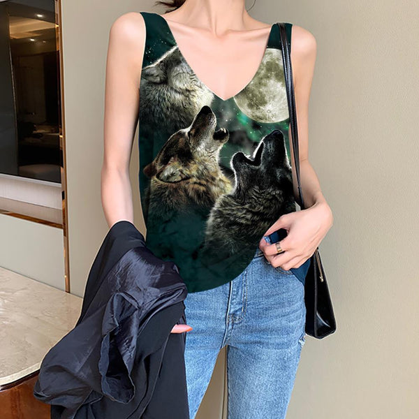 Wolf Tank-Top women Animal Funny Top Anime Sleeveless 3d Moon Anime Clothes Wol...