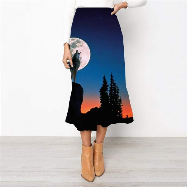 Wolf Skirt Women Animal School skirt Anime Skirt Ladies Moon Rock Frauen Tree H...