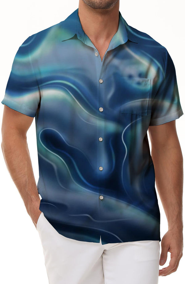 Marble Texture Design Blue Men's Short Sleeve Shirt Casual Button Shirt Short S...