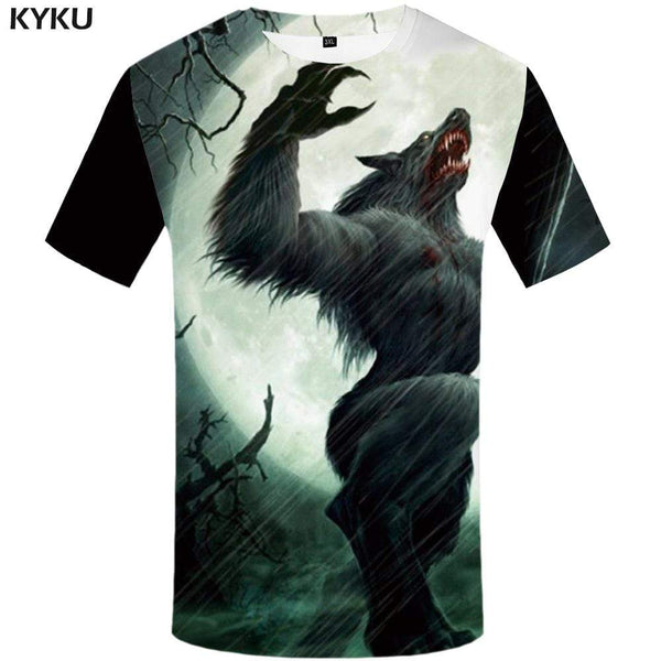 KYKU Wolf T-shirts Men Moon Tshirt Anime Animal T shirts Funny War Tshirts Prin...