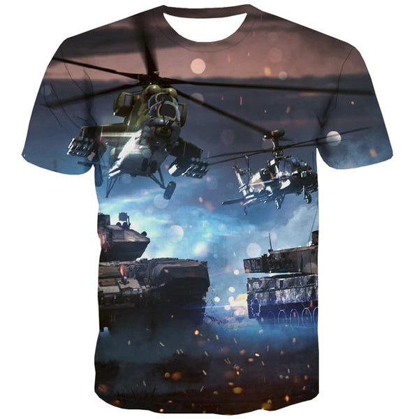 Tank T-shirt Men Helicopter Shirt Print Military T-shirts Graphic War T shirts ...