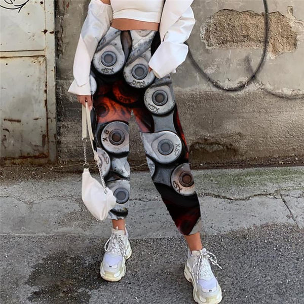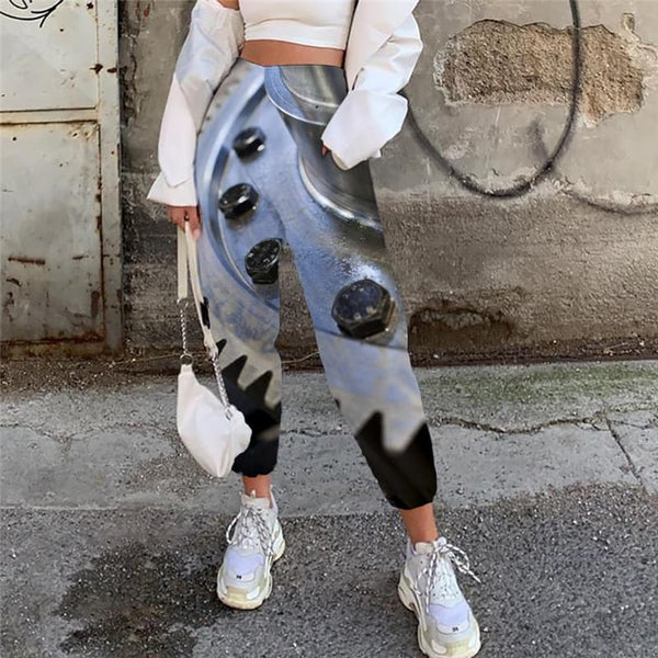Metal Trousers Women Engine Casual Pant Gear 3d Printed Harajuku High Waist Pants