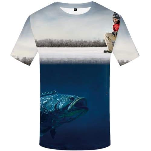Fish T shirts Men Animal Tshirts Cool Funny T-shirts 3d Fisherman Shirt Print F...
