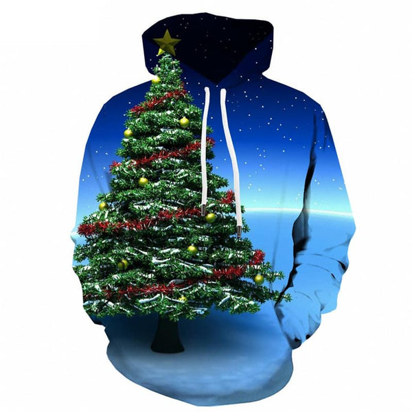 Christmas Sweatshirts men Christmas Tree Sweatshirt Printed Blue Hooded Casual ...