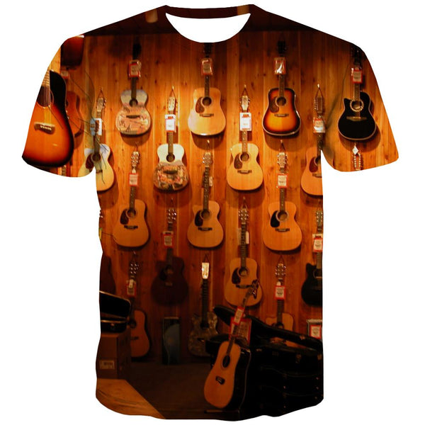 Guitar T-shirt Men Music Tshirts Cool Wooden T-shirts 3d Metal Tshirts Casual