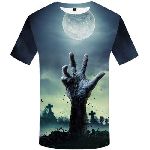 Halloween T-shirt Men Grave T-shirts 3d Hand Tshirts Novelty Moon Tshirt Anime ...