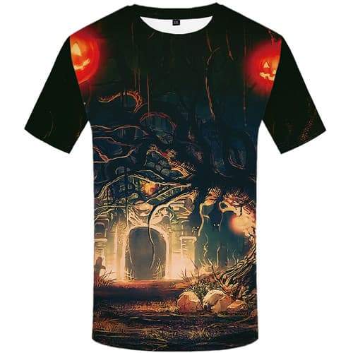 Halloween T shirts Men Pumpkin Shirt Print Lantern T shirts Funny Tree Tshirts ...