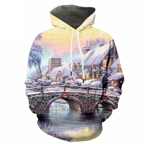 Christmas Sweatshirts men Snow Hooded Casual Tree 3d Printed New Year Sweatshir...