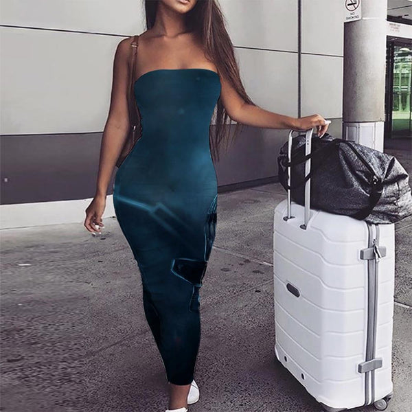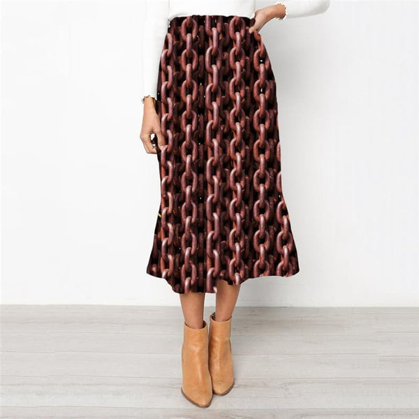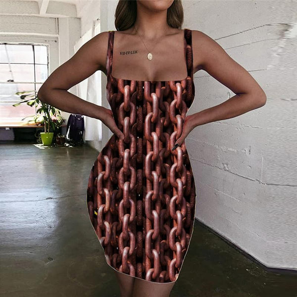 Iron Chain Dress Women Brown Ladies Dresses Metal 3d Print Punk Rock Party