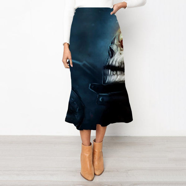 Skull Skirt Women Punk High waist skirts Flame Rock Frauen Iron Chain Skirt Ladies