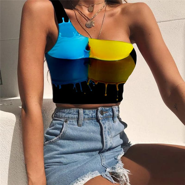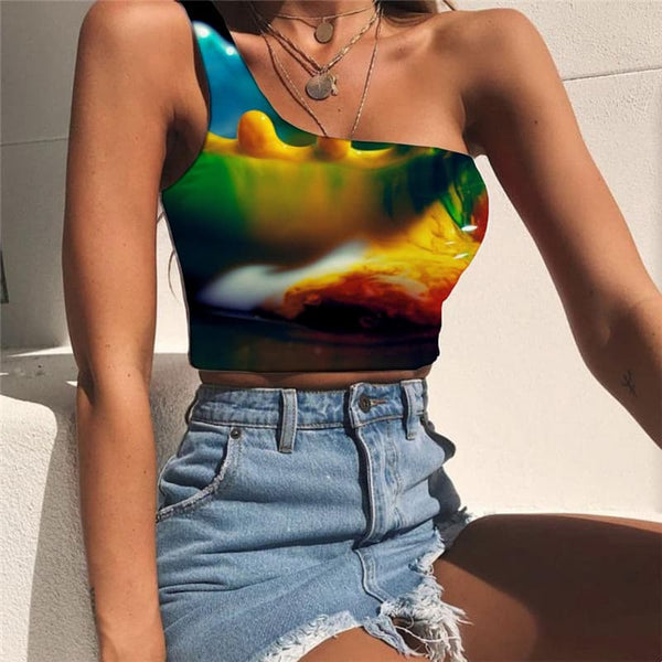 Pigment Tank Tops Women Colorful Midriff T shirt Art Sleeveless Shirt