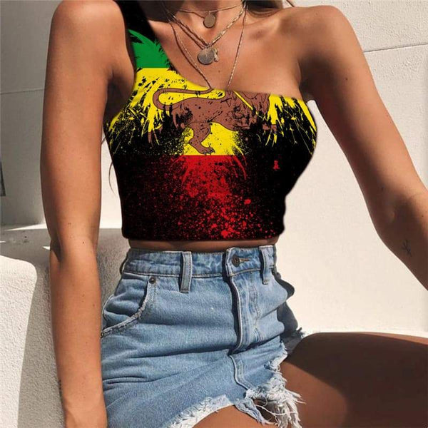 Lion Tank Tops Women Animal One Shoulder Crop Anime Sleeveless Shirt Snowflake ...