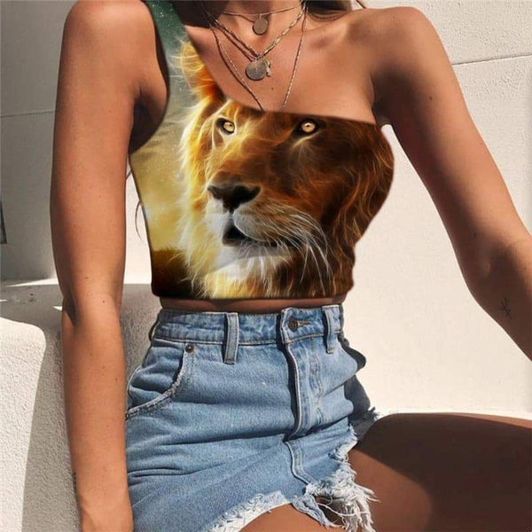 Lion Tank Tops Women Animal Sleeveless Shirt Anime One Shoulder Crop Abstract T...