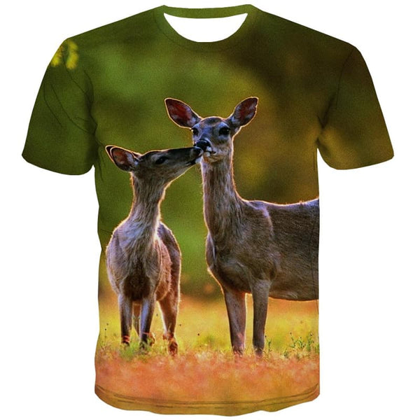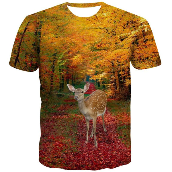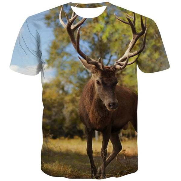 Deer T-shirt Men Animal Tshirts Cool Lovely Tshirt Printed Landscape Shirt Print
