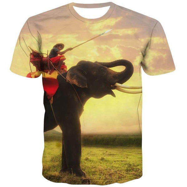 Animal T-shirt Men Elephant Tshirts Cool Landscape T-shirts Graphic Harajuku Ts...