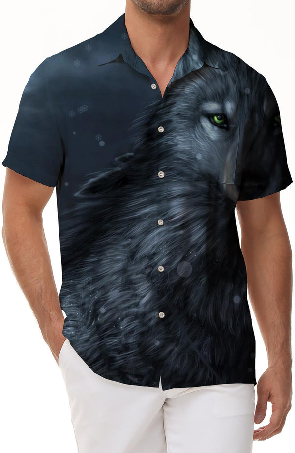 Heat Wave Wolf Shirt Summer Everyday Men's Casual Hawaiian Button Print Short S...