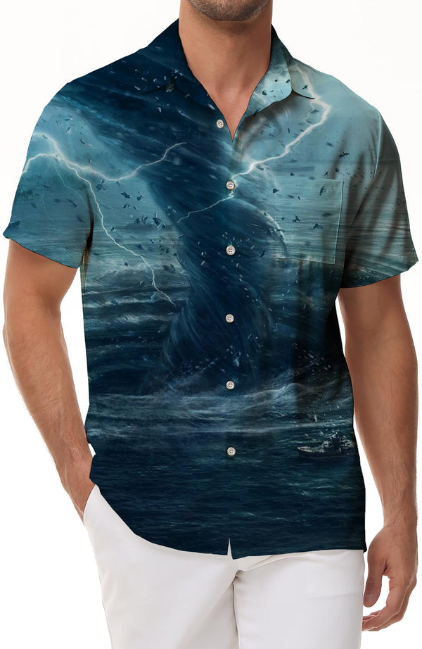 Men's Tornado Printed Pattern Short Sleeve Lapel New Beach Casual Shirt Summer ...