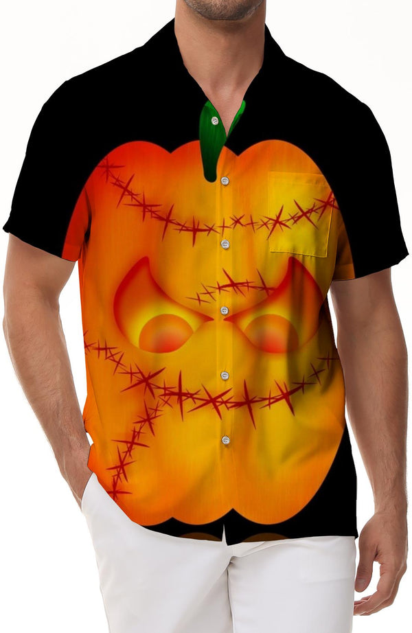 Horror pumpkin lantern Hawaiian men's outdoor button-down shirt short-sleeved c...