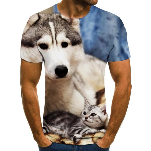 t shirt animal docile pets Casual Casual cat and dog men art costume