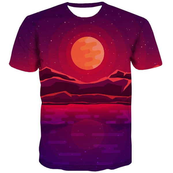 Galaxy T shirts Men Moon Shirt Print Sunset Tshirts Casual Mountain T shirts Fu...