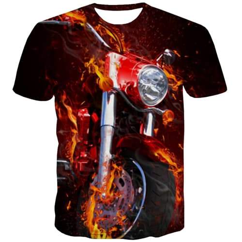 Flame T shirts Men Locomotive Tshirts Casual Punk Shirt Print Rock T-shirts 3d ...