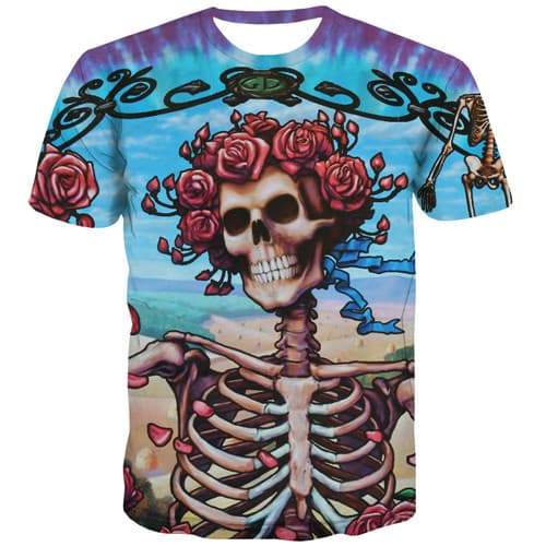 Skull T shirts Men Skeleton Tshirts Cool Rose Tshirt Anime Flower T shirts Funn...
