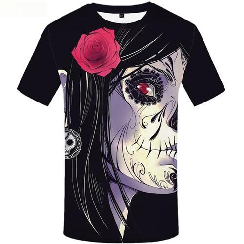 Skull T-shirt Men Beauty Tshirts Novelty Rose Tshirts Casual Character Shirt Pr...