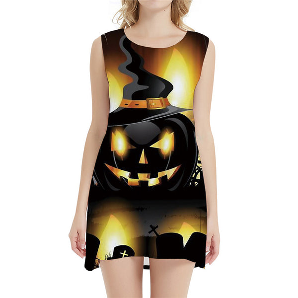 Halloween Dress Women Pumpkin Ladies Dresses Sexy Short Cosplay 3d Print Evenin...