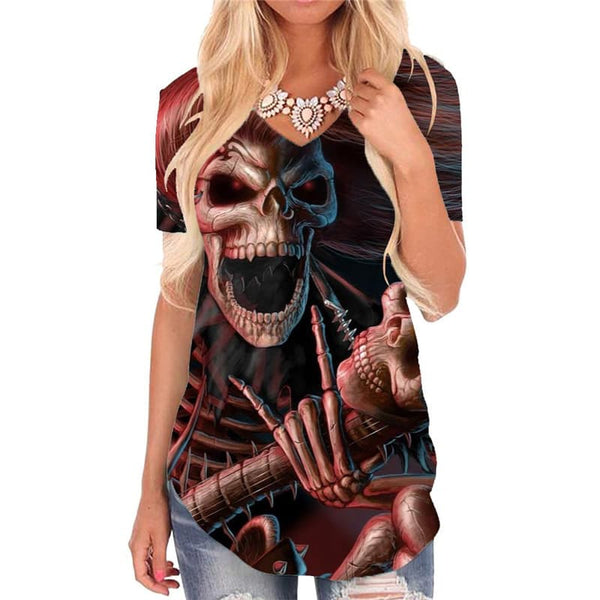 Skull T-shirt women Skeleton Shirt Print Love V-neck Tshirt Rock T-shirts 3d