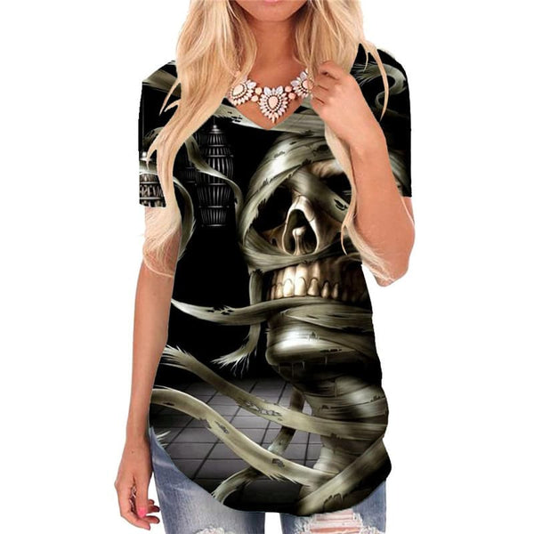 Skull T-shirt women Punk Tshirts Printed Mummy Shirt Print Zombie V-neck Tshirt
