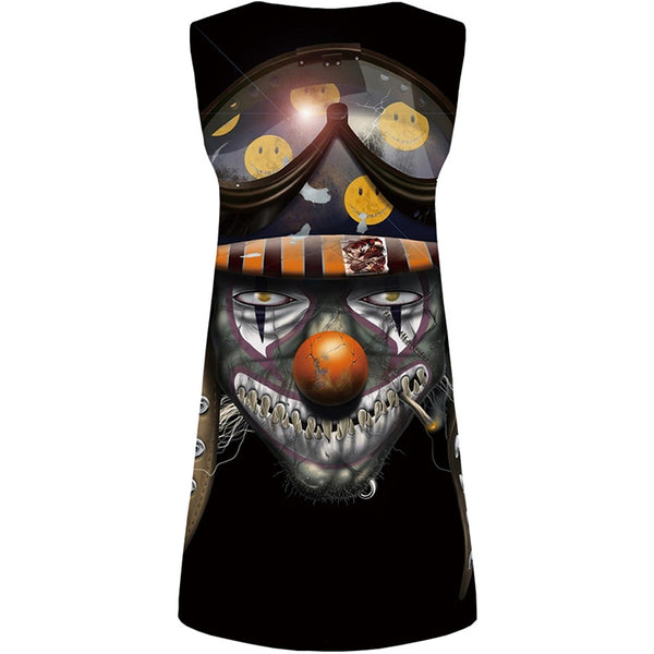 Clown Dresses Women Galaxy Space Vestido Sexy Skull Halter Sleeveless Smoke Sun...
