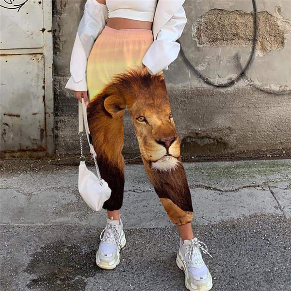 Lion Trousers Women Animal Jogger Pants Anime High Waist Pants Harajuku Casual ...