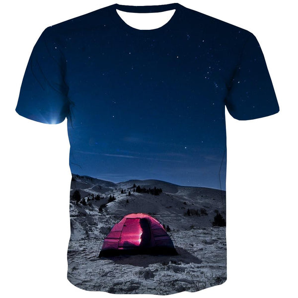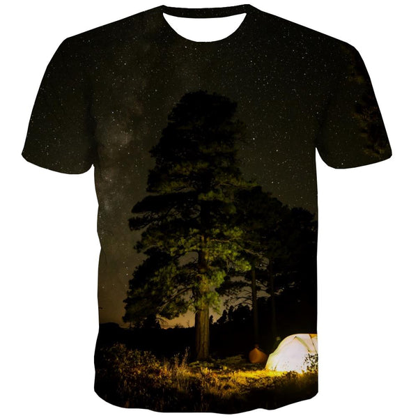 Camping T-shirt Men Sunset T-shirts 3d Forest T shirts Funny Flame Tshirts Novelty