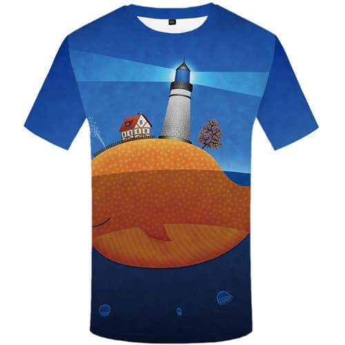 Fish T-shirt Men Animal Shirt Print Ocean T-shirts Graphic Cartoon T shirts Fun...