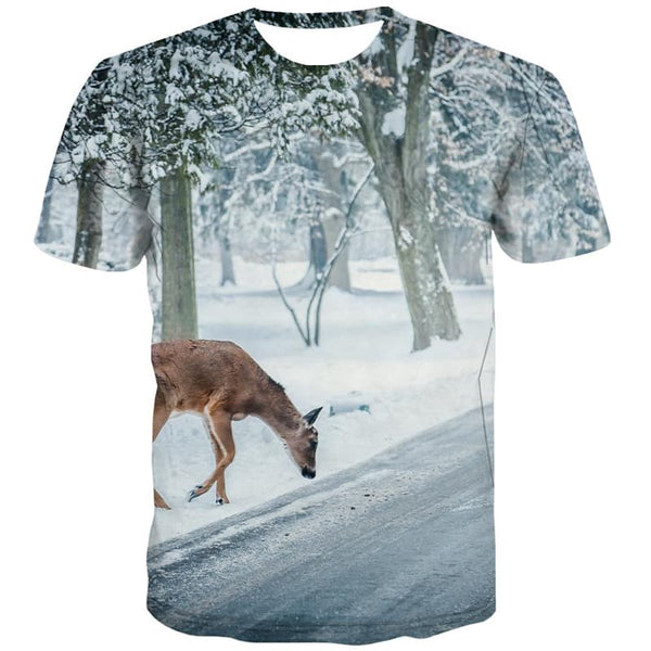 Deer T shirts Men Animal T-shirts 3d Snow Tshirts Novelty Tree Tshirts Casual