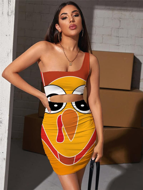 Thanksgiving Dresses Women Animal Vestido Sexy Maple Leaf Bodycon Dress