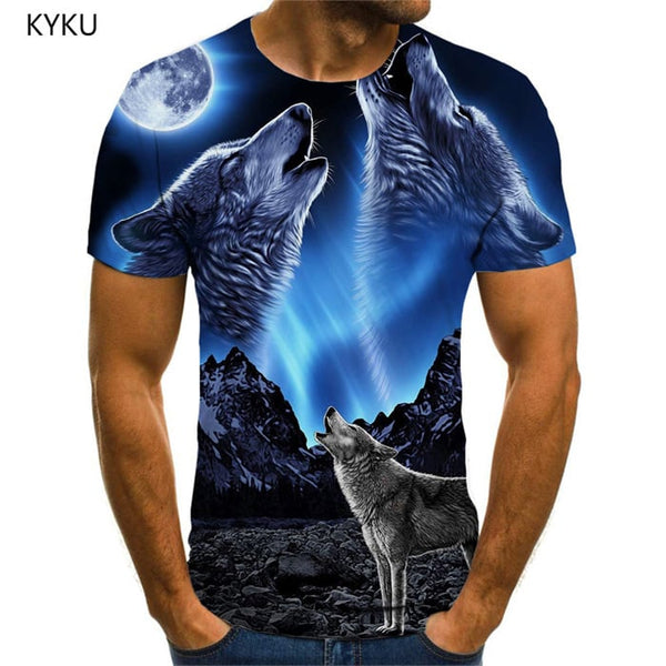 Wolf T-shirt Men Animal T-shirts 3d Moon Anime Clothes Street Funny T shirts