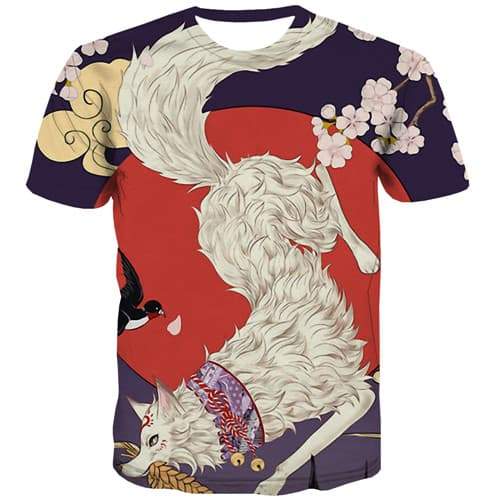 Wolf T-shirt Men Flower Tshirt Printed Animal T shirts Funny Cartoon Tshirts Ca...