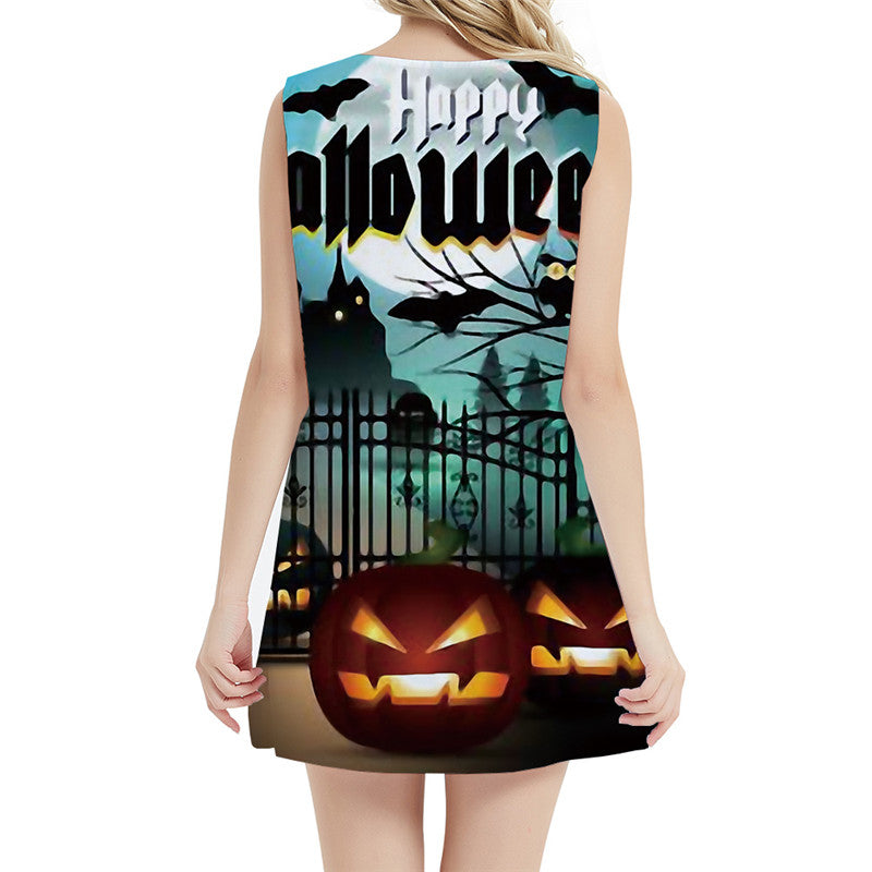 Halloween Dress Women Pumpkin Short Moon Vestido Sexy Bat Boho Animal Office Womens Clothing Elegant