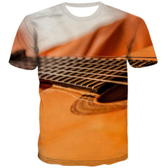 Guitar T-shirt Men Music Tshirts Cool Wooden T-shirts 3d Metal Tshirts Casual