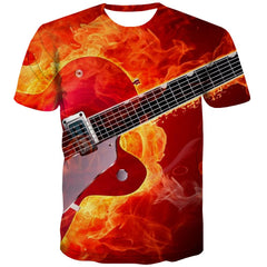 • Guitar T shirts Men Music Shirt Print Wooden Tshirt Printed Metal Tshirts Casual