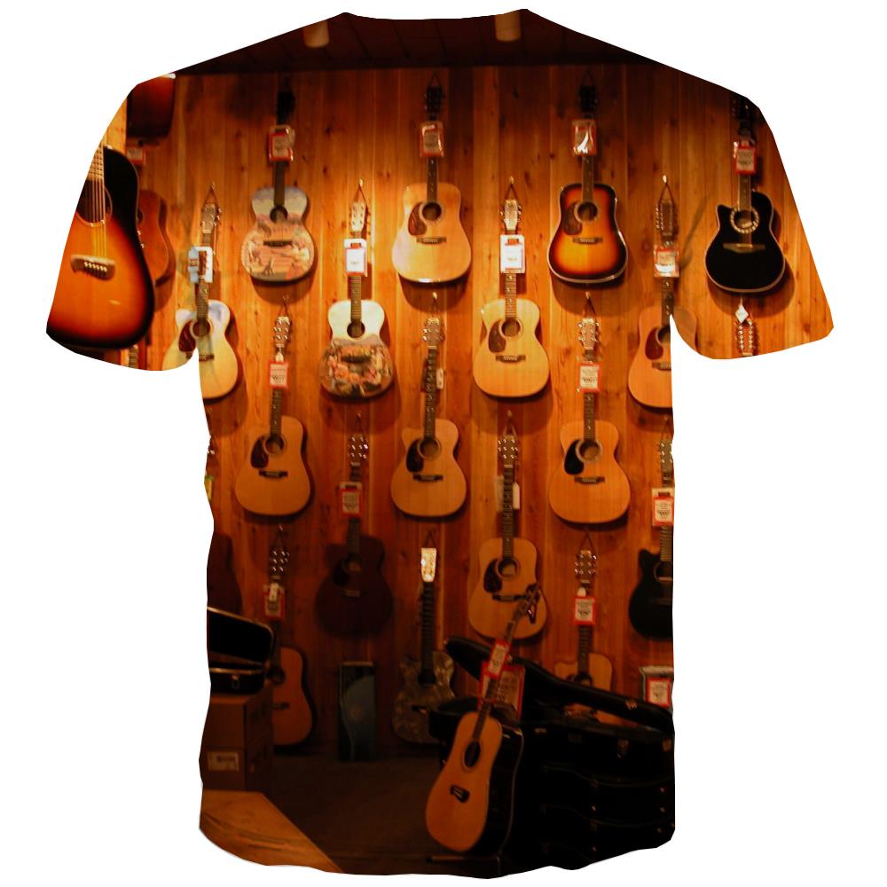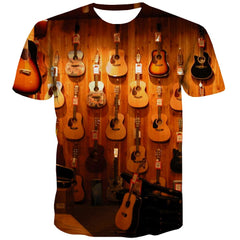Guitar T shirts Men Music Tshirts Novelty Wooden T-shirts Graphic Metal Tshirt Anime