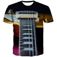 Guitar T shirts Men Music Tshirts Novelty Wooden T-shirts Graphic Metal Tshirt Anime