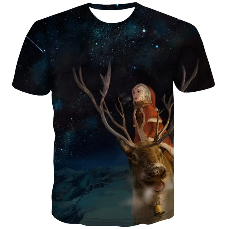 • Deer T-shirt Men Animal Tshirts Novelty Christmas Tshirt Printed Galaxy T shirts Funny Meteor Shower T-shirts Graphic