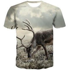 Deer T-shirt Men Animal Tshirts Novelty Landscape Tshirts Casual Short Sleeve
