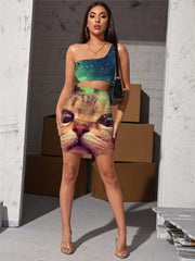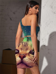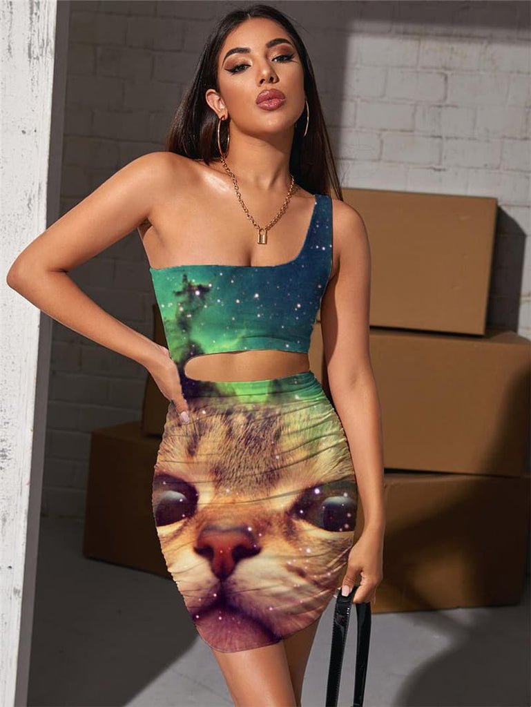 • Cat Dresses Women Animal Pleating Nebula 3d Print Galaxy Vestido Sexy Lovely Halter Sleeveless