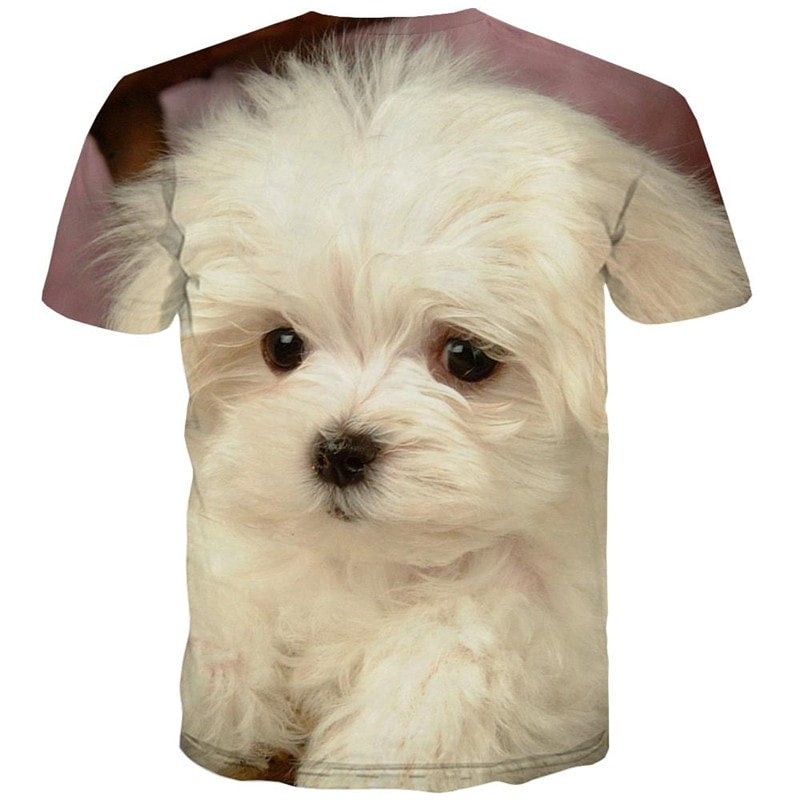 t shirt Little White dog Puppy Cute Pets Hip hop tshirt 3D big Smart dogs art costume man Casual
