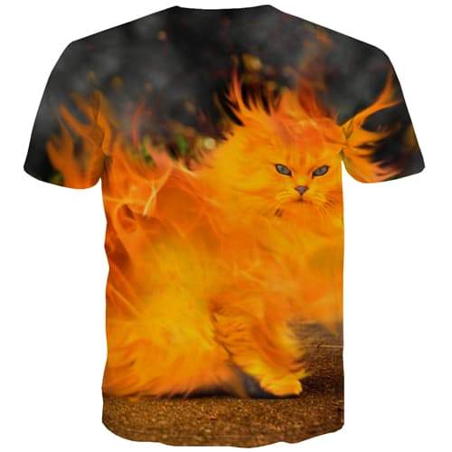 Flame T-shirt Men Cat T-shirts Graphic Animal Tshirt Printed Hip Hop Tshirts Novelty Goth Rock Tshirt Anime Short Sleeve - KYKU